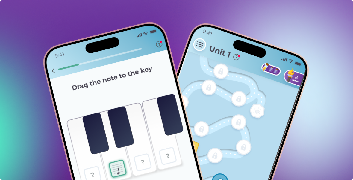 Complete a short onboarding and take a test to determine your goals and assess your level. Then get the right learning unit that matches your skills. Beginners don’t get overwhelmed with complex topics, while experienced musicians aren’t bored with the basics.