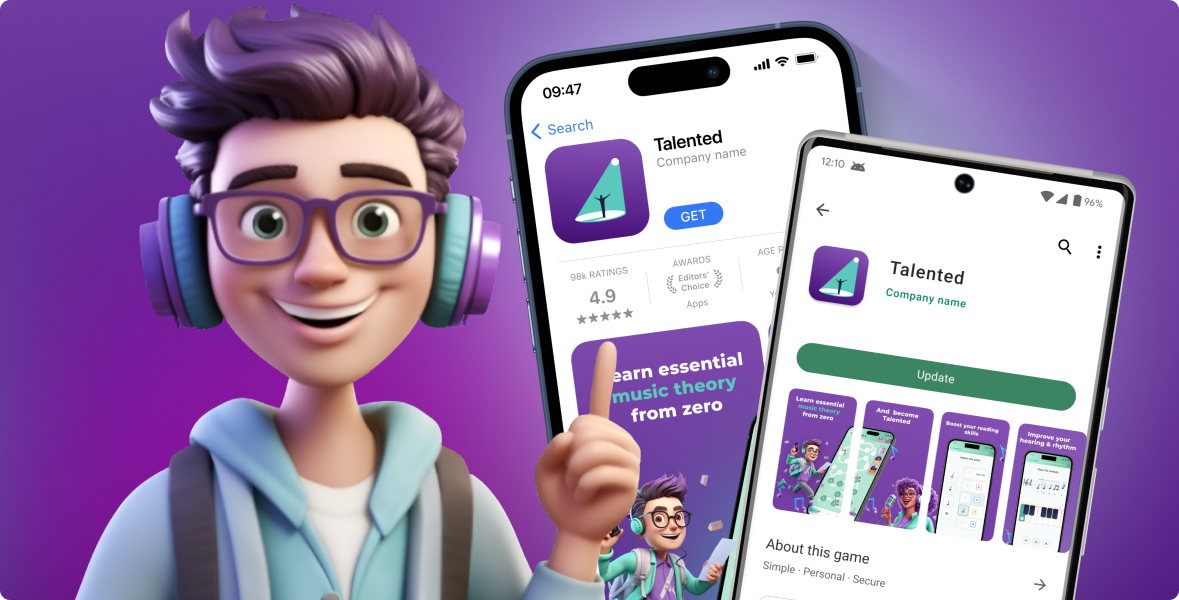Talented is a mobile app for learning music theory in a simple, structured, and engaging way. You can train musical hearing and interpret sheet music. The app is available on both iOS and Android.